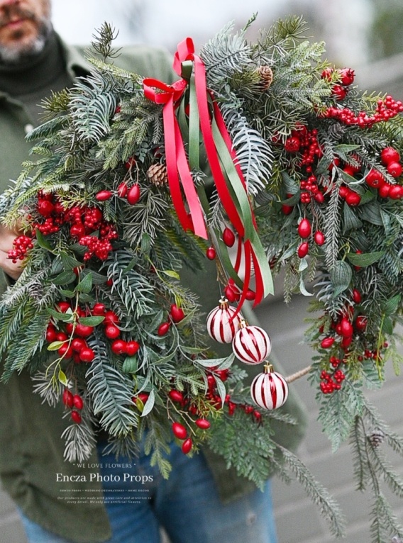 Świąteczny wieniec, asymetryczny, wykonany z materiałów wysokiej jakości.